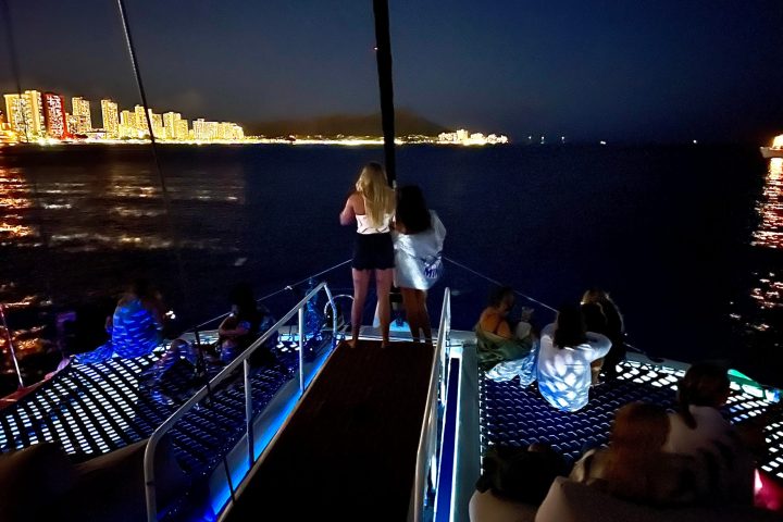 The perfect boat party. Bring good vibes, and enjoy a night filled with your favorite music and high quality cocktails from our premium on-board bar while cruising with us aboard the Moana Catamaran! From bachelor/bachelorette parties to corporate events, our 55′ luxury catamaran is equipped to be the perfect setting for any event. Your experience would include: premium sound system, an experienced captain and crew, premium bar serving small batch Premium liquor and local beer, and the night sky illuminated by the Mahina (“moon”) and Waikiki’s city lights. Countless memories have been made on the Moana, book a charter to take your life event to the next level.