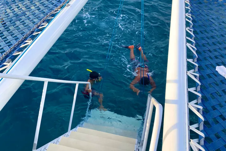 We provide everything you need for an unforgettable snorkeling experience, including high-quality snorkels, masks, fins, and vests. Plus, each ticket includes a complimentary drink from our full-service bar to enjoy as you sail.